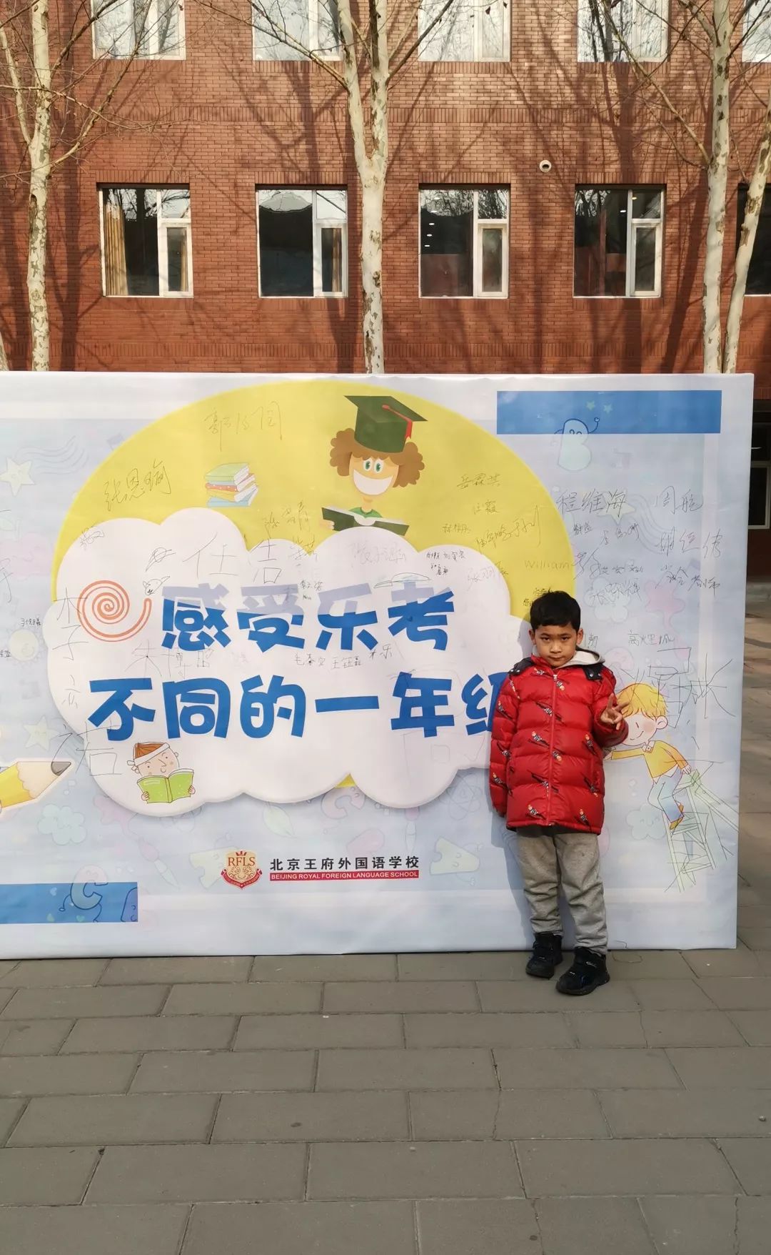 伴随着孩子认真答题,我的心情也不那么紧张了。最后考的是8班,有幸看到我儿子面对考试时的状态,他表现得很轻松,完全没有紧张的情绪,他的性格本来是有点害羞和腼腆的,但是在王府学校却很自信、绽放,我很庆幸选了王府学校。