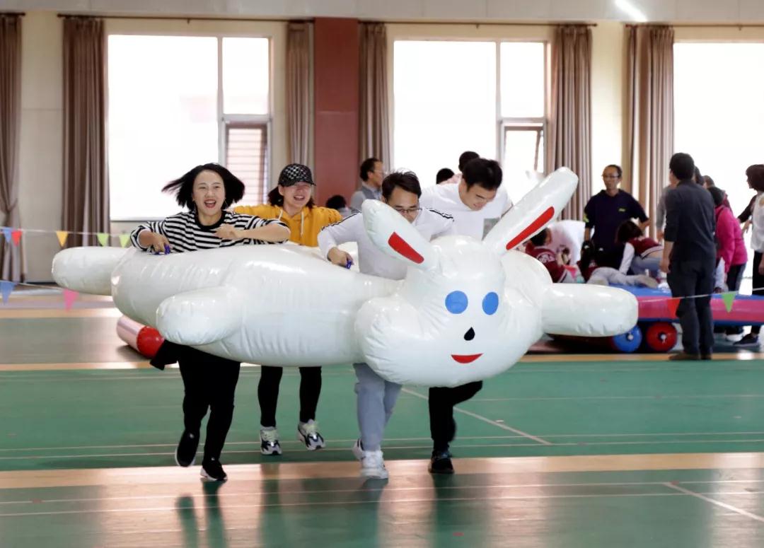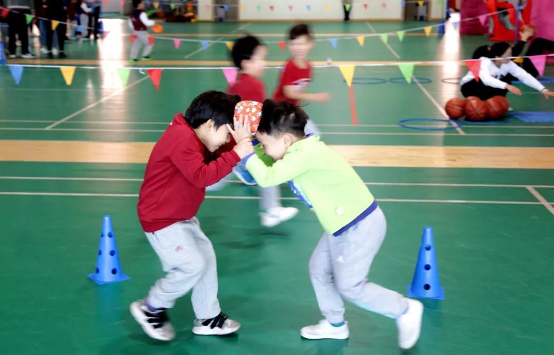 快乐有趣的体育游戏开始了。七个班级轮流进行七个妙趣横生的游戏:“钢铁战车”“无敌风火轮”“球球乐”“无轨电车”、“滑翔机”“蚂蚁搬豆”“龟兔赛跑”。形式丰富多变,内容富有创意。