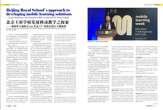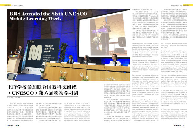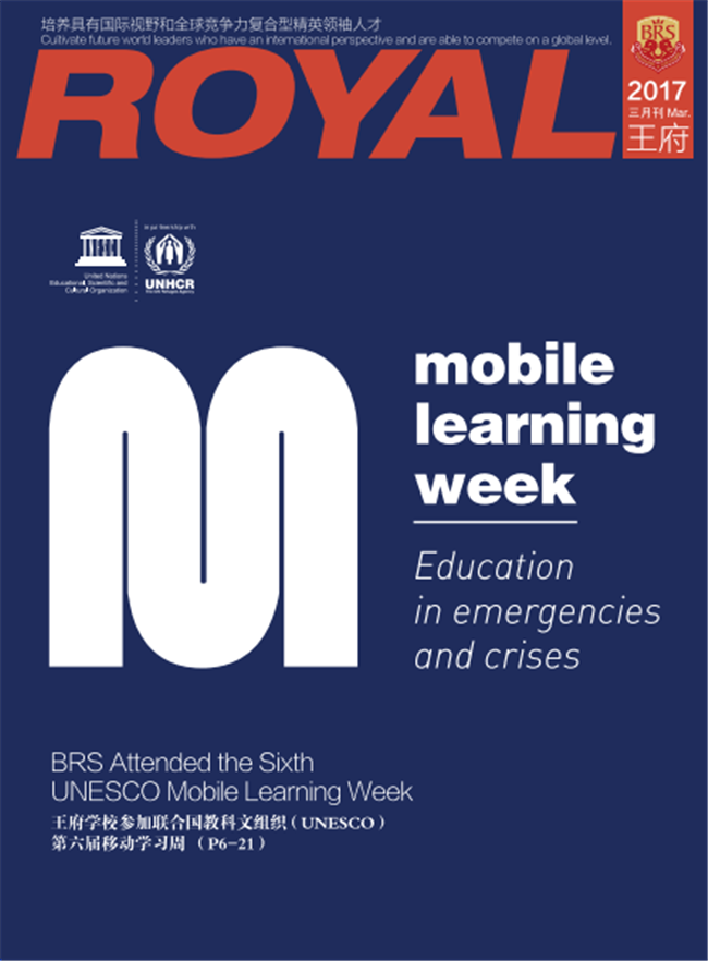 The latest issue of the BRS Magazine Royal features a special coverage on BRS participation in the 2017 UNESCO Mobile Learning Week. The cover story explores many facets of BRS’ contribution towards using new education solutions that help reduce education inequality. Also in the regular columns you get to meet two of our teachers. In ‘A Foreign Perspective’, we introduce a foreign teacher who sees BRS a home away from home, and in ‘Overseas Diary Series’, a Chinese teacher shows us an impressive learning experience at UNC in the United States.