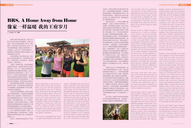 在踏上我的中国之旅之前,我心中充满了对未知生活的不安和疑虑。中国人怎么样?在北京王府学校的新工作会一切如愿吗?学生们的行为举止如何?如今,半年时间转瞬即逝,我现在已经释然多了。不仅如此,从2016年9月初来中国至今,我还收获了许多前所未有的宝贵体验,很乐意在此和大家分享>>>