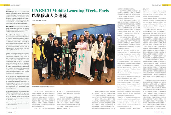 2017年3月18日-24日,我与北京王府学校师生一起,受邀请远赴法国巴黎,参加了联合国教科文第六届移动教学大会。我们与来自世界各个国家的领导者、学者和教育家,就如何应对危机中的教育改革方案进行了讨论。