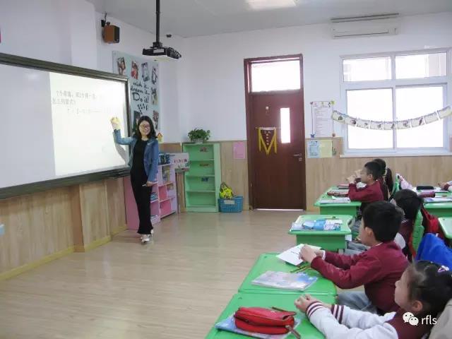 第一节课是二·五班班主任、数学老师李明艳的公开课,整个课堂既有数学教师一丝不苟的严谨态度,又不失师生互动的愉快氛围,通过老师生动的教学语言和先进的多媒体教学课件,孩子们轻松地掌握了课堂所学的知识点。