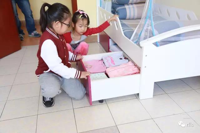 小学部一年级的孩子们主人翁意识超强,不仅把自己舒适的桌椅让给弟弟妹妹们,还拉着他们的小手参观教室,讲解起教室的布置和正在学习的书籍来头头是道,亲切有爱。