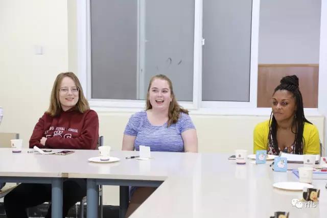 不仅如此,实习外教还与大家分享了自己在这次为期一个月的实习期间的感受,她们说第一次接触ESL课堂(英语作为第二语言教学的课堂),感受到不同的学生风貌,增长了很多知识;全校师生都对她们十分热情、非常照顾,让她们感觉到家的温暖;她们了解了很多中国的文化,去了很多北京的名胜古迹,大开眼界。