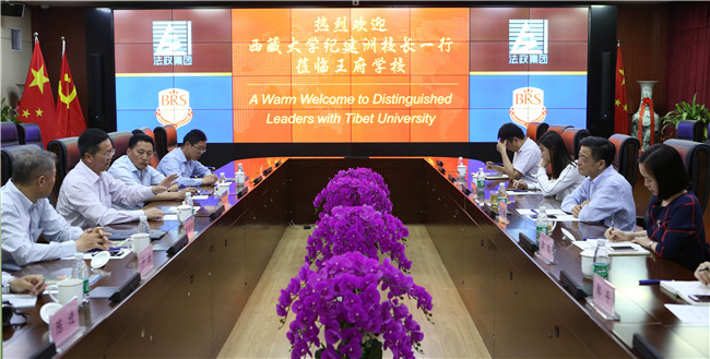 On May 9, 2017, Ji Jianzhou, Principal of Tibet University, and a delegation of other 5 people visited Beijing Royal School. BRS Principal Wang Guangfa extended a warm welcome to these distinguished visitors and engaged them in far-reaching discussions of bilateral educational cooperation. Discussions focused on plans for utilizing BRS’s world-class satellite distance education network and outstanding faculty to bring Tibet’s teaching force and educational practices up to international standards.