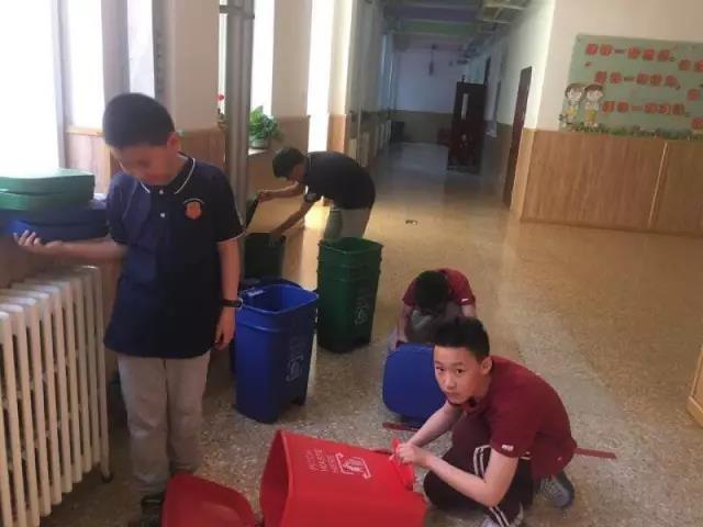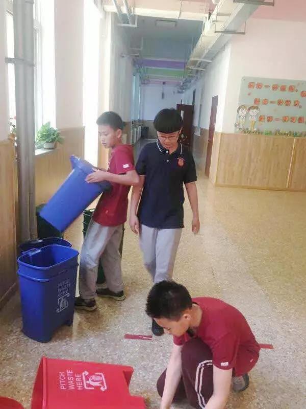 蓝色、绿色、红色的垃圾桶被摆放在每层走廊的显眼位置,每节课间,小学者们都拿着记录本站在垃圾桶旁边,你扔了一次纸张垃圾,记一分;他把喝完的矿泉水瓶扔在指定的垃圾桶内,得一分……就这样,一分一分累计,可以用积分换奖励,鼓励了大家自觉进行垃圾分类的行为。