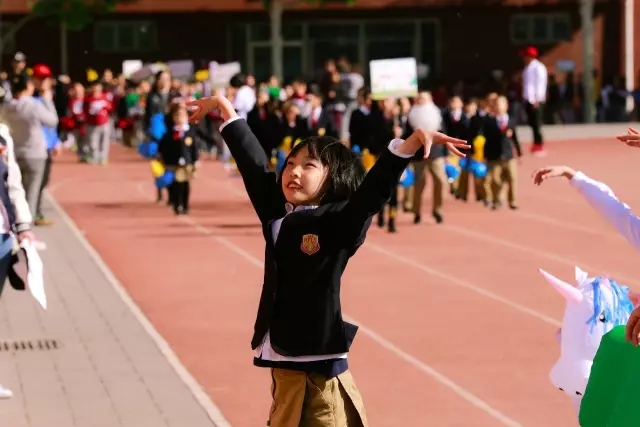运动会上,雨晗与同学们一起舞动青春,为班级的荣誉拼尽全力。