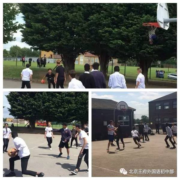在Biddenham中学的篮球场上,来自王府篮球队的几位学子与当地同学们进行了简单的友谊赛。跨过语言的障碍,孩子们在赛场上用彼此熟悉的方式进行了一次有趣的交流。