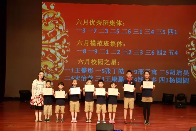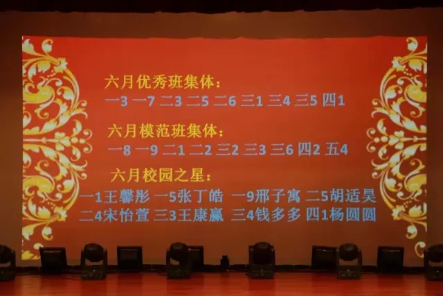 接下来,是公布六月优秀班集体和六月模范班集体,以及获得六月校园之星的学生名单。
