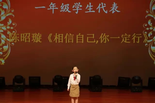 对于自己的收获,同学们有哪些感想呢?一年级学生代表陈昭璇、二年级学生代表邓德卿、王史雨涵、三年级代表杨秉宜分别登台发言,总结了一学期的学习生活,也为自己设定了新的目标,对辛勤付出的老师们表达感激之情。