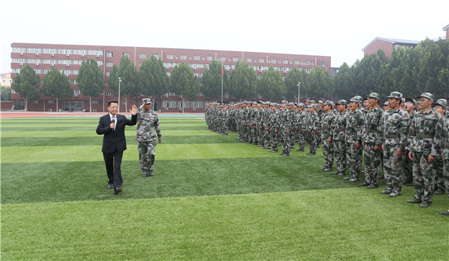 伴随着《中国人民解放军进行曲》的旋律,参加军训的学生们组成的8个迷彩方队,相继走过主席台和观众席,向前来观礼的家长老师们喊出了响亮的口号,送上了军训回归后的第一声问候。随后,我校校长王广发在军训基地领导的陪同下,检阅了这支年轻的队伍。