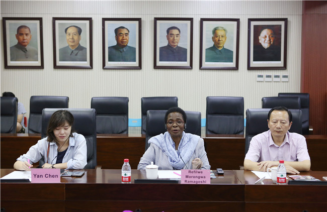 ▲我校校长王广发和里非利·莫龙娃·拉玛荷许(Refilwe Morongwa Ramagoshi)博士