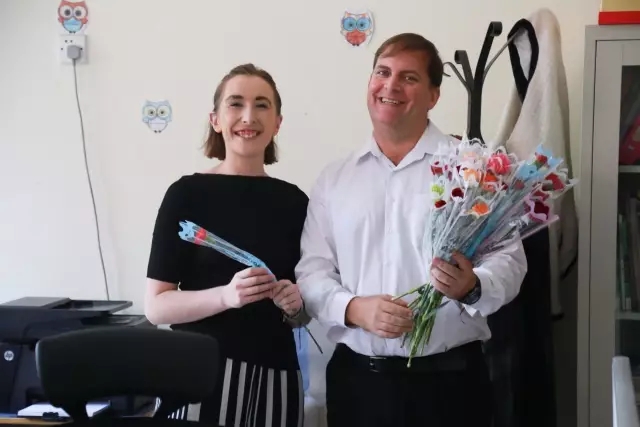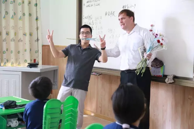 在这个特殊的日子里,为了表达对所有外籍教师远渡重洋、为王府教育事业所做贡献的感谢,Gavin副校长走进外教办公室以及教室,亲手为正在忙碌着的外籍教师们送上鲜花。