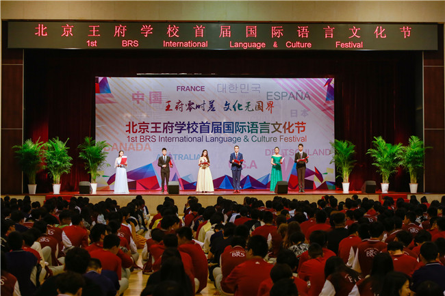 2017年9月26日,在6位学生主持人用不同国家语言问好声中,北京王府学校首届国际语言文化节正式开幕。