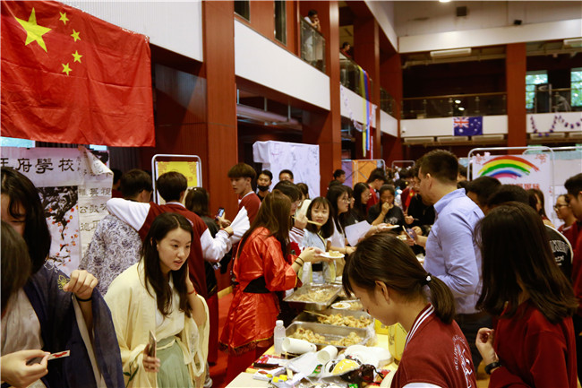 “一般学校吃不到的今天都吃到了”“这次活动让在学校的时光更美好了”“除了游戏我也了解到一些留学信息”“跟大家一起去做美食、销售,真的是一次非常好的学习之外的体验”……从现场的反馈来看,语言文化节活动可谓让王府的同学们狠狠地开心了一把,且收获颇丰。