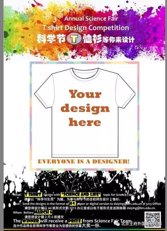 接下来,张颖老师介绍并鼓励同学们参加科学节的T恤和Logo的设计,在艺术上展现自己的才华。在上届科学节中,84班的袁子淇所设计的2个图案都被印成了T恤,非常受欢迎。