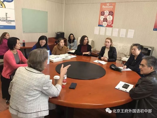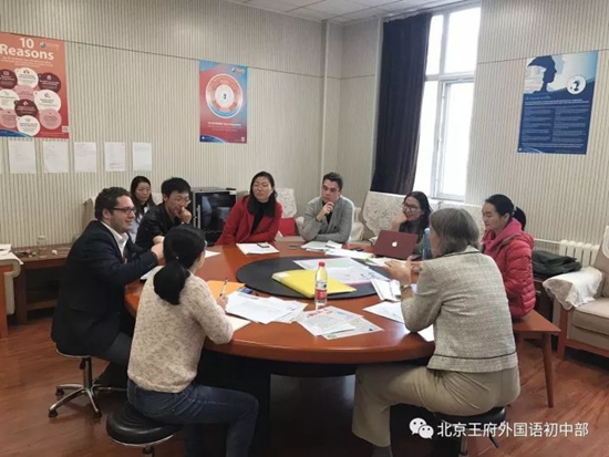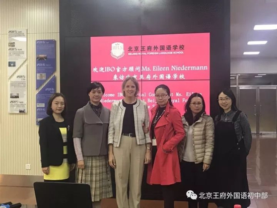 2017年10月17-18日,IBO指定的MYP顾问Eileen Niedermann女士对北京王府外国语学校初中部进行了访问。此次顾问来访的目的是了解MYP项目在我校的进展情况,探查是否符合项目标准和实施要求,倾听老师们的反馈,发现问题并提出意见和建议,为项目后续发展铺平道路。在为期两天的访问中,Eileen Niedermann女士与校领导、项目协调员、各学科组的老师以及学生代表进行了会谈,走进课堂听课,并参观了我校的体育场馆、图书馆和实验室等。