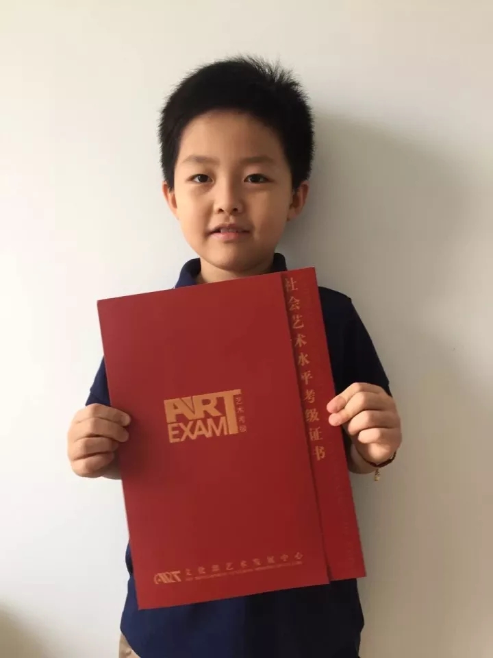 绘画水平的提高,我们为你点赞。你不仅轻松地拿到了国画三级证书,现在又准备参加国画六级的考级,而且你在古旭老师的指导下代表小学部参加了中欧“环保小使者”绘画比赛,最终作品入围了水立方的专场展览。
