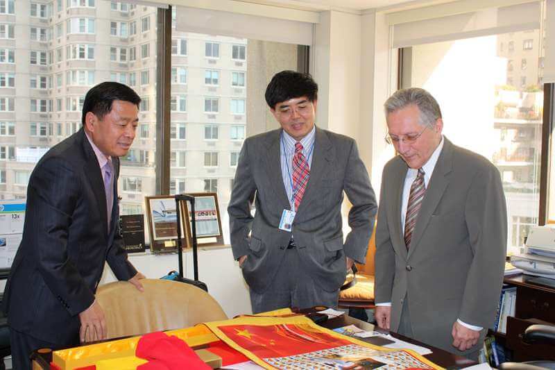 ▲2013年4月王广发校长与美国大学理事会主席David Coleman和理事会会长Maghan Keita交流