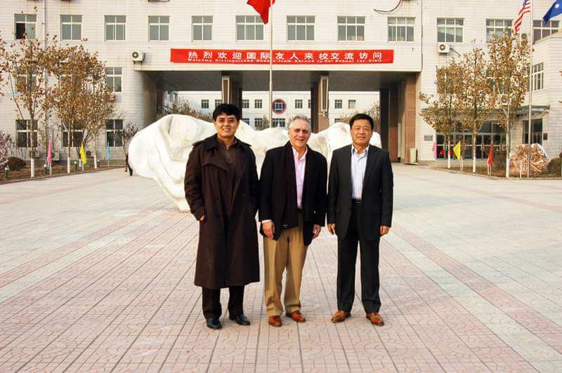 ▲2009年12月美国大学理事会高级副总裁彼得· 尼克罗尼(中)访问北京王府学校