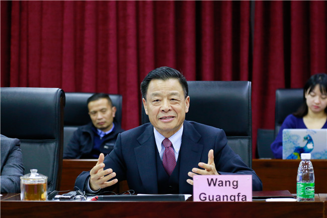 ▲美国大学理事会一行与我校校长王广发在演播厅会议室进行座谈