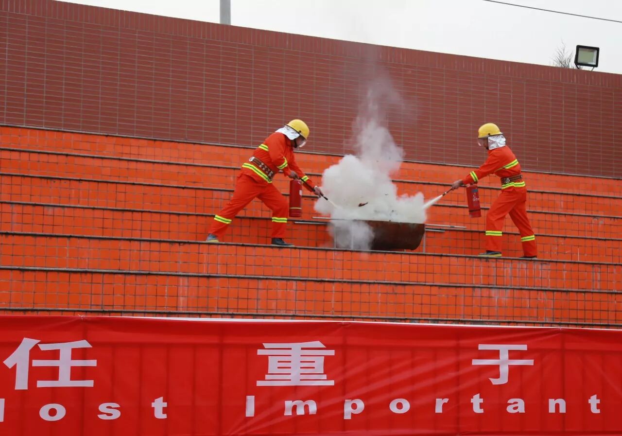 为了加深同学们的直观印象,消防员现场生起两堆火,随即操起干粉灭火器对准火源根部,瞬间将火堆熄灭。