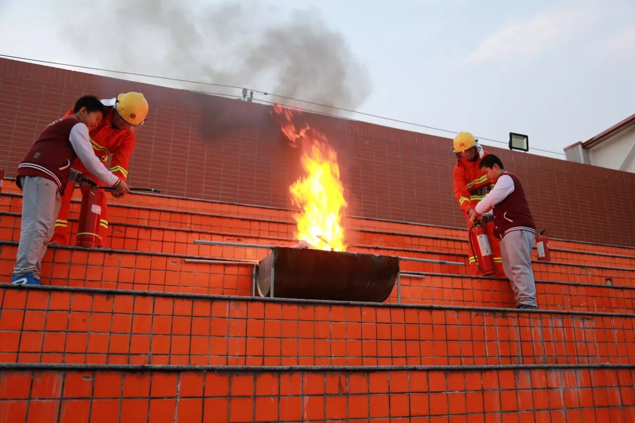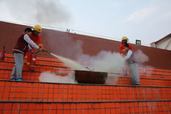 之后,两名六年级男同学受邀体验使用灭火器灭火。大火再次被点燃,王府娃在消防员的指点下,拎起灭火器、快速扑灭火源,胆大心细、动作麻利。这种体验式的校园消防演练形式具有很好的教育效果,把安全意识和自救知识深深地印在了孩子们的脑海中。