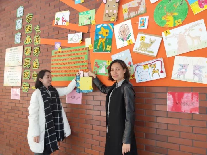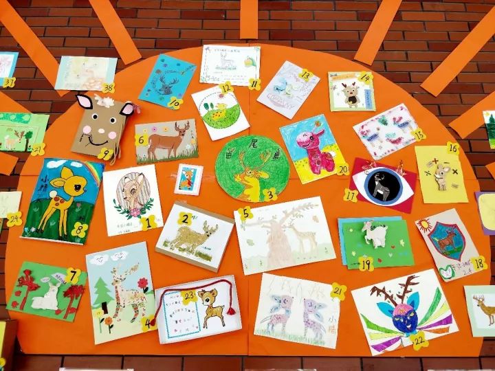本次活动共征集作品90余份,有水彩白尾鹿、布贴白尾鹿、剪纸白尾鹿和米粒白尾鹿等等,创意十足,可见“专注小精灵”白尾鹿对孩子们的影响。老师们选取了部分作品张贴在一楼展示区,供全校师生欣赏,同时,也邀请大家当评审,为自己喜爱的“白尾鹿”投出宝贵的一票。