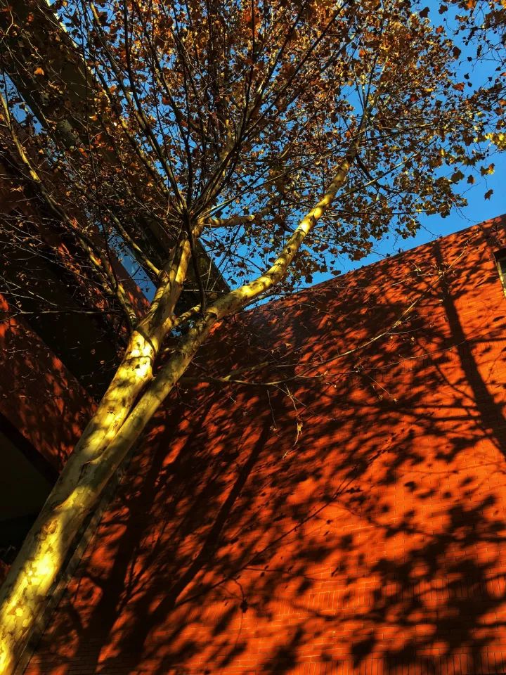 一叶落而知天下秋,在王府,这叶,便是梧桐叶。 校园里到处都是高大的法国梧桐树,夏天,它们伸展着绿油油的枝叶,像一把把长柄伞,呵护着这片神圣的校园净土;秋天,一片片桔黄、土黄、桔铬黄、那坡里黄的梧桐叶,宛如一幅幅秋日里的油画,为王府带来一场别样的视觉盛宴。