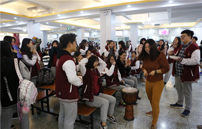 ▲在老师的带领下,学生们在校园进行音乐快闪活动