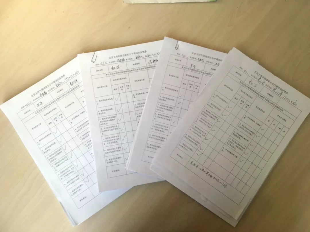 家长们还认真填写了学校下发的活动反馈表,对教师执教情况和学校工作提出了自己的意见。