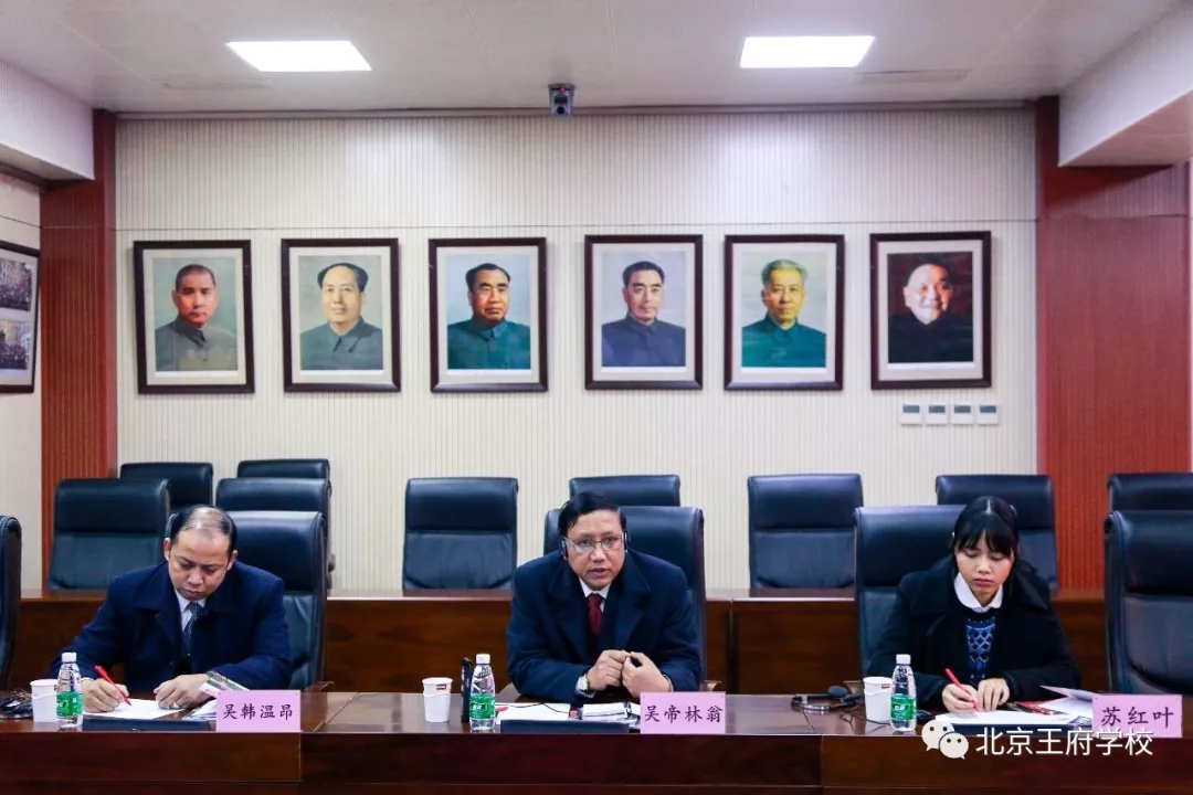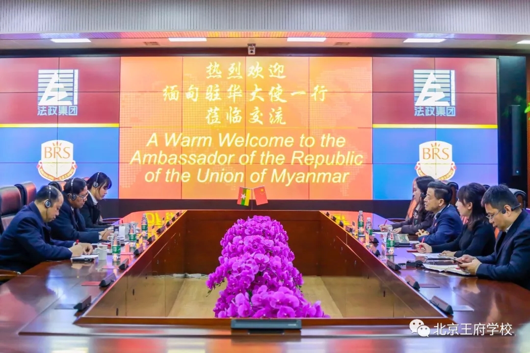 2018年1月17日,缅甸驻华大使吴帝林翁一行访问北京王府学校,同我校校长王广发举行了会谈,双方就教育和医疗领域在缅甸的合作事宜进行了深入交流。