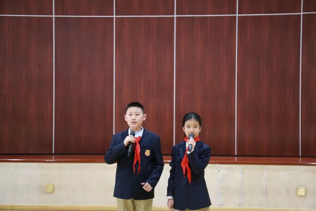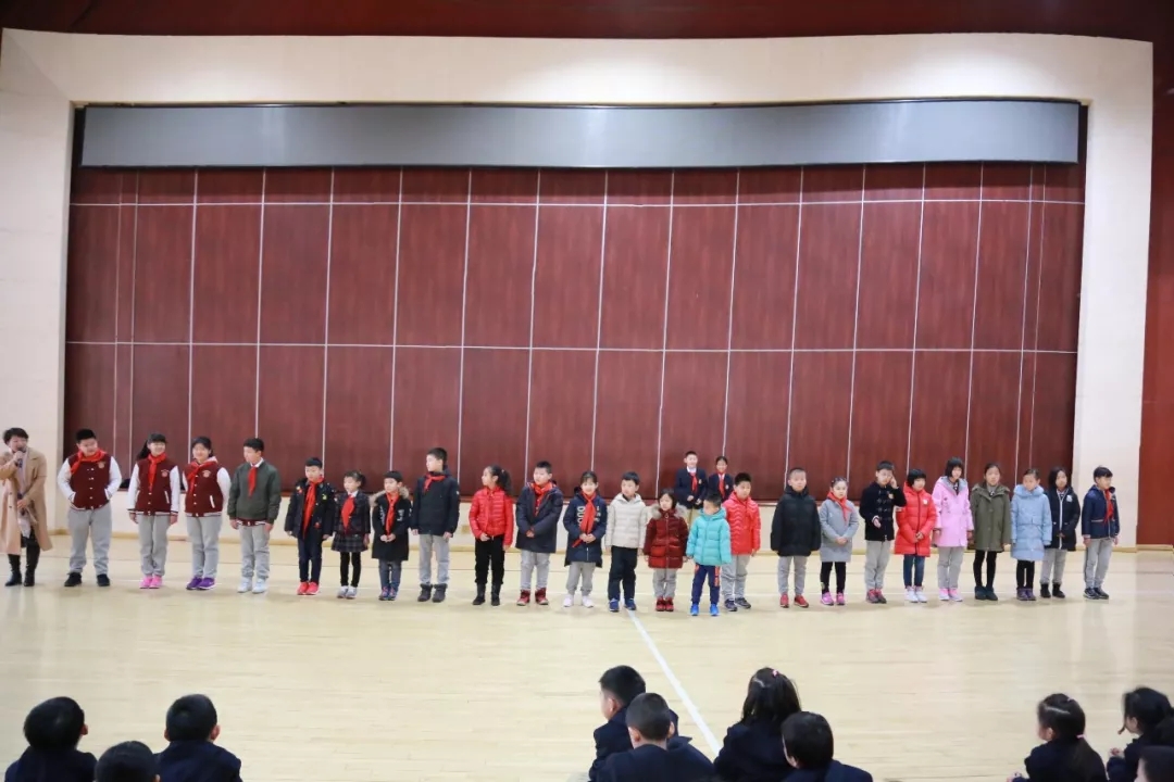 升旗仪式还有一个新环节——介绍新同学,带给他们温暖和归属感,以后大家就是相亲相爱的一家人啦。新同学面带笑容,大大方方地在大家的掌声中上场,新生代表祝大家新年快乐,好好学习天天向上。