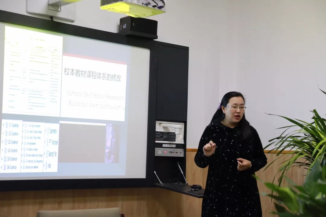 双语组组长朱丹老师,本学期双语组将致力于校本教材课程体系的修改以及社科类低龄段教研产品。他们还将和年级组合作,举办特色学生活动,例如,针对步入青春期的五、六年级学生,双语组将举办青春期心理知识讲座等。