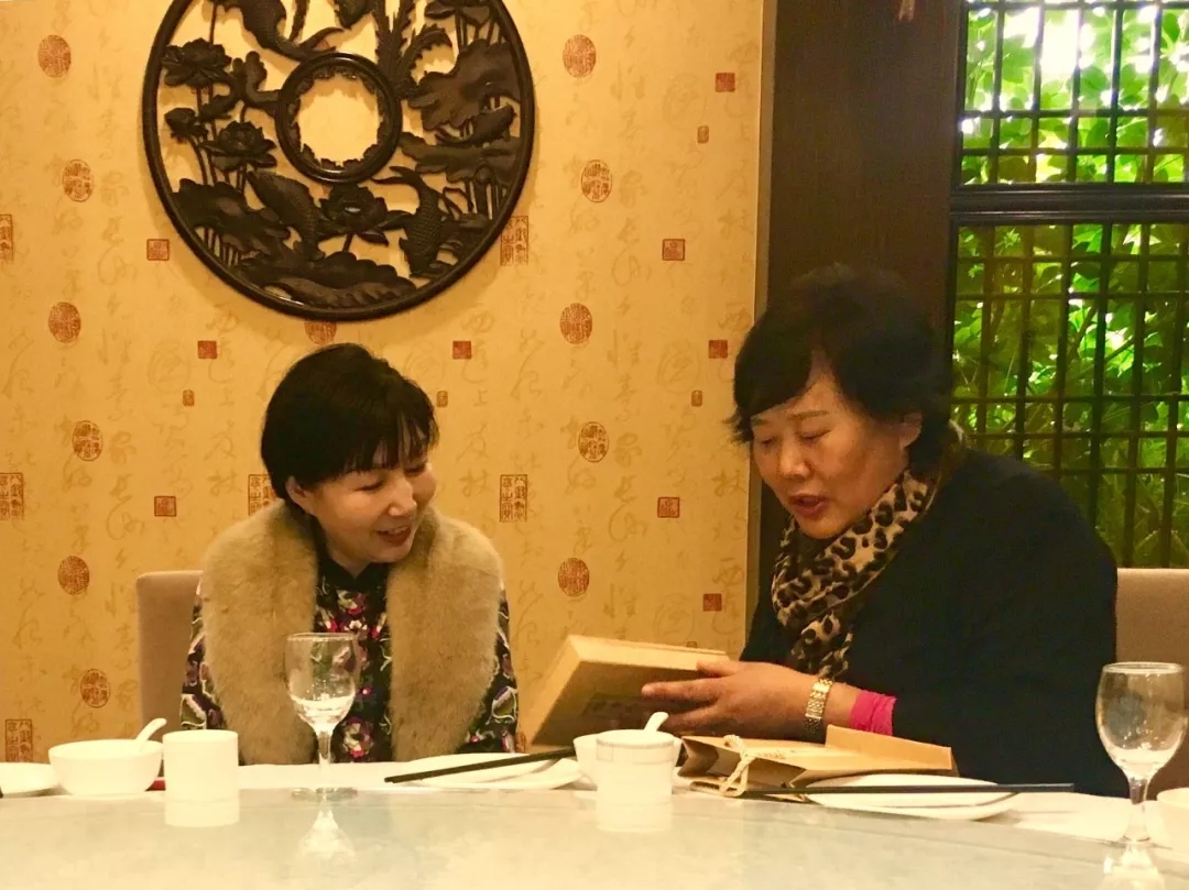△图:任文茹校长向窦桂梅校长赠送礼物