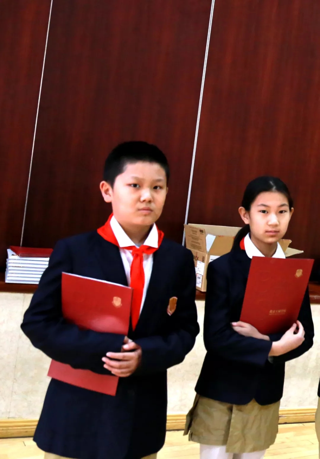 △ 六年级学生代表何雨宸(左一)、贾以晨