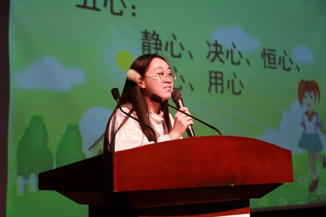 3月19日下午,一年级的全体师生相约国际报告厅,高秀丽老师和张恩嫦小朋友为我们开启活动之门,展望春天,揭示“吾”乃“我也”,“吾”其音又通“五”,“五心”飞扬。带着“要静心,下决心,树恒心,有爱心,能用心”,向前飞翔。