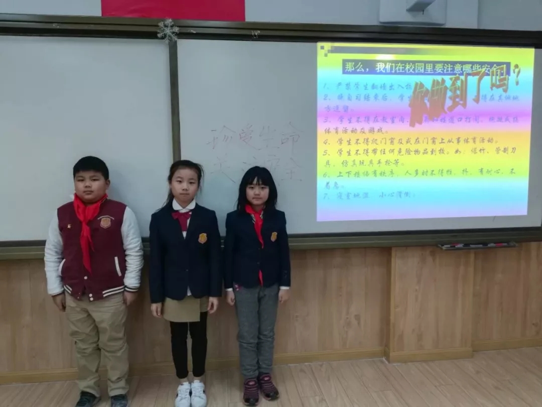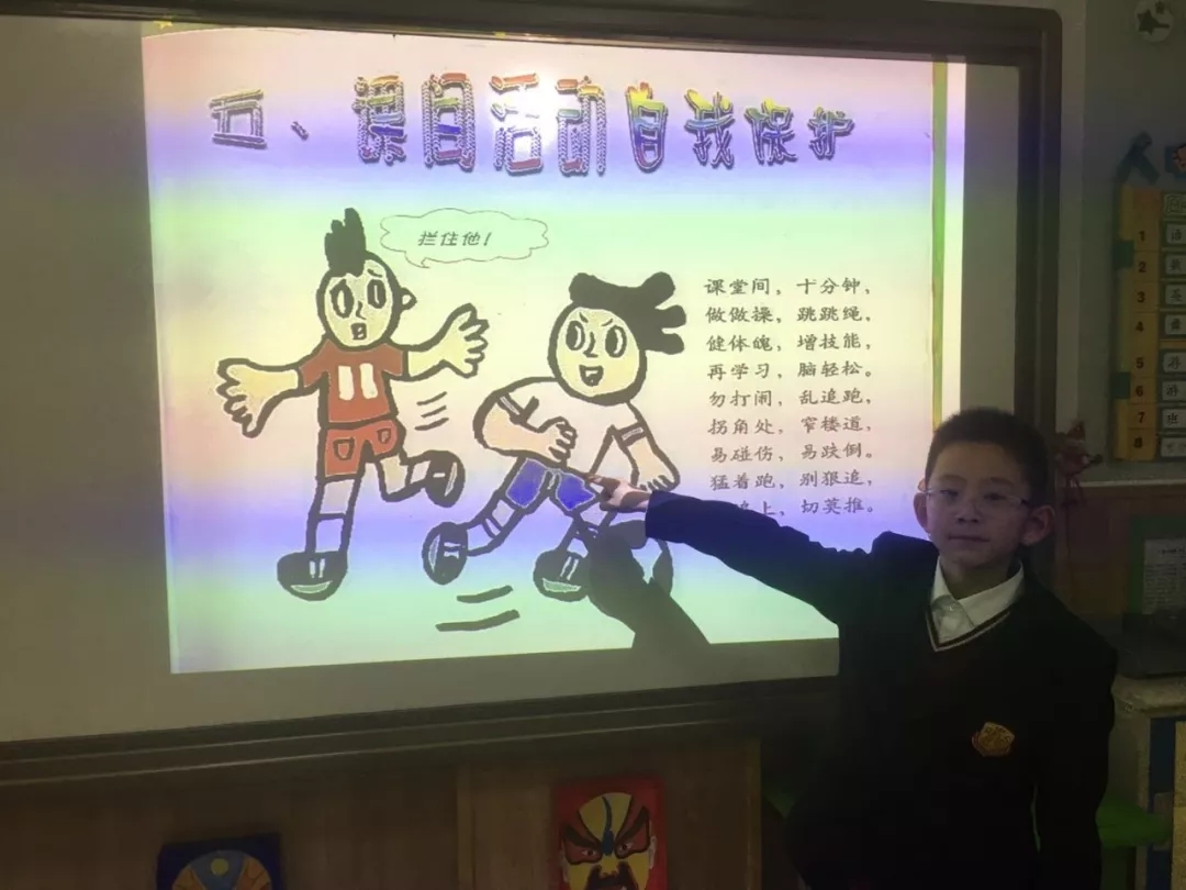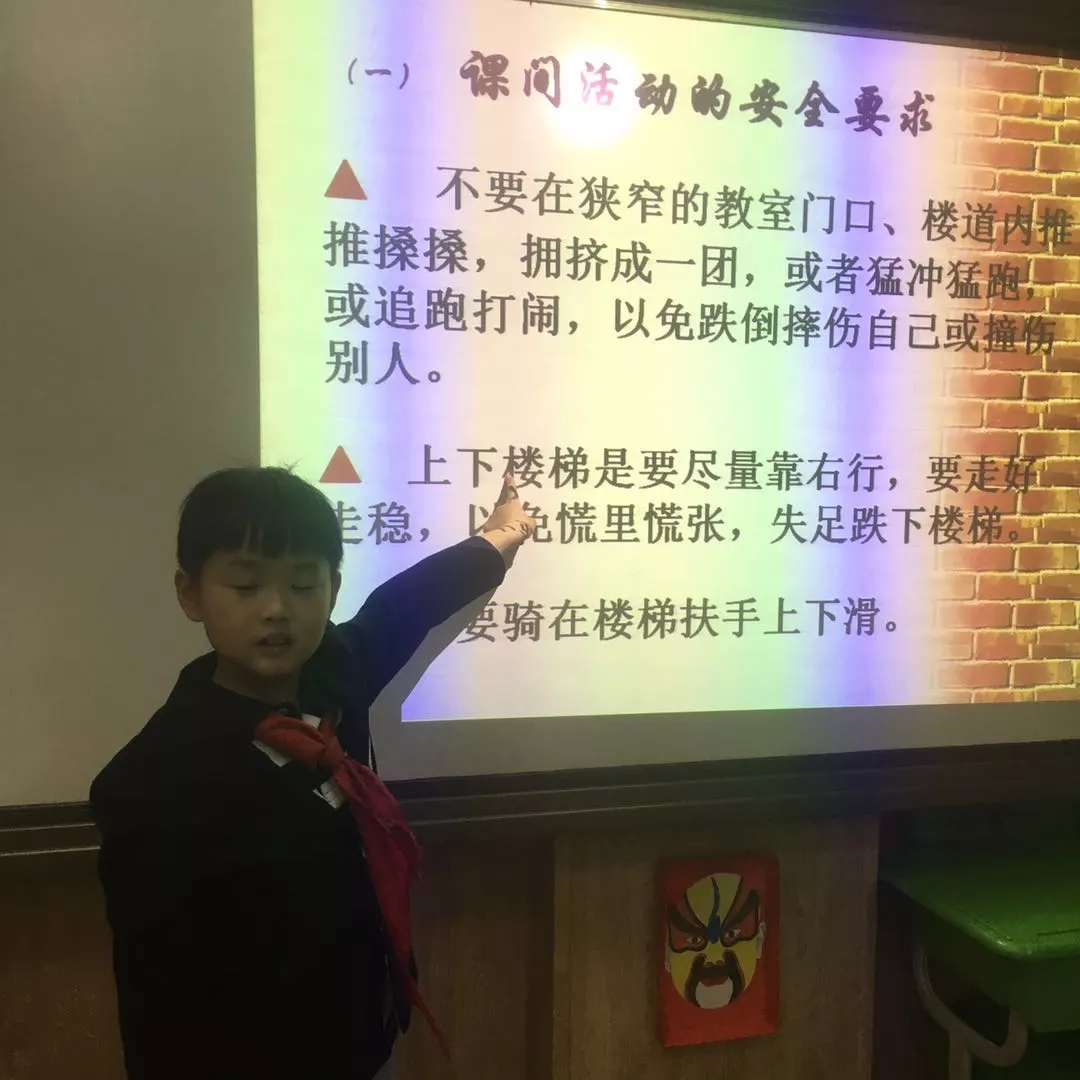 同学们有的以讲故事的方式提醒大家在校园追跑打闹的危险性,有的以小品表演的方式告诉小伙伴上下楼梯要懂得谦让,还有的班主任结合班上发生过的小纠纷,引导学生们思考同学间遇到小摩擦时应该怎么处理。