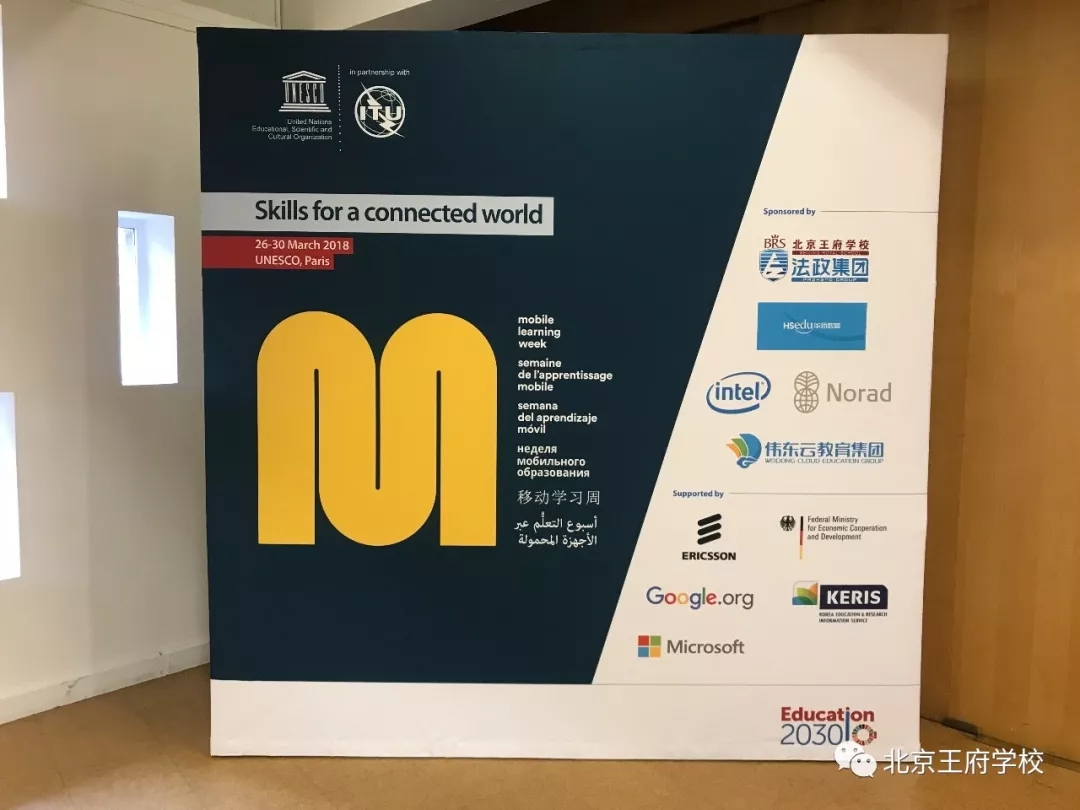On March 26, the Mobile Learning Week 2018 was officially opened at UNESCO Headquarters in Paris, and Beijing Royal School was there, marking our sixth consecutive year of participation. The 2018 edition’s theme is “Skills for a Connected World” and it examines the types of skills needed in and for a “Connected” economy and society, with a focus on digital skills and competencies. The event also provided a platform on which to share exemplary practices in mobile learning, where Beijing Royal School and Fazheng Group have showcased successful examples of China’s mobile education.