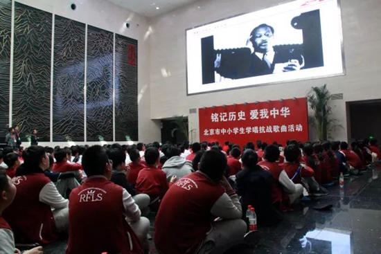 随后,歌唱老师带领同学们学习了《长城谣》。一曲长城谣,让学生们了解到日军侵略对百姓带来的沉痛伤害,感受到当时爱国民众的抗日激情。