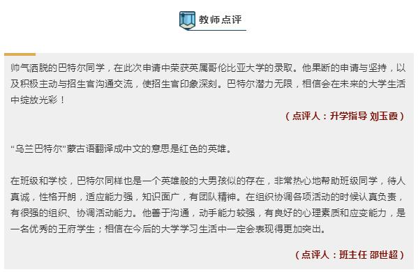 ▲北京王府学校2018届毕业生乌兰巴特尔