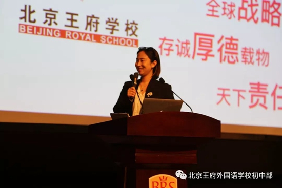 高中部余瑶副校长与家长们分享了王府高中的课程设置和教育理念。王府高中教育以每个学生为中心,尽可能的满足了孩子们的各自发展需求。100多门学科的设立,30多个学生自主社团的创建,不同等级、不同种类的国际课程设置,这些要素为学生的个性化发展提供了有力保障。