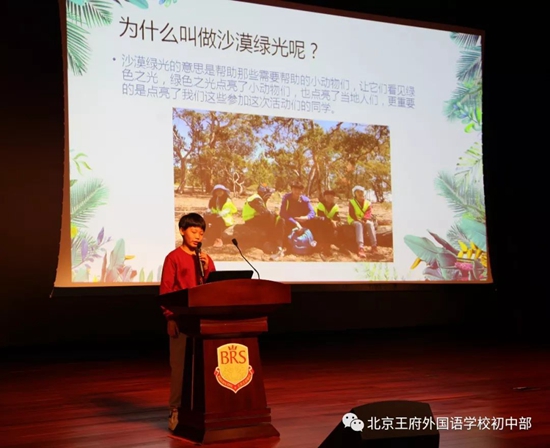 “沙漠绿光行动”是北京王府外国语学校澳洲冬令营中一项重要活动,郝振珲同学这样说道“沙漠绿光的意思就是帮助那些需要帮助的小动物们,让它们看见绿色之光。绿色之光点亮了小动物们,也点亮了当地人们,更重要的是点亮了参加这次活动的我们。”