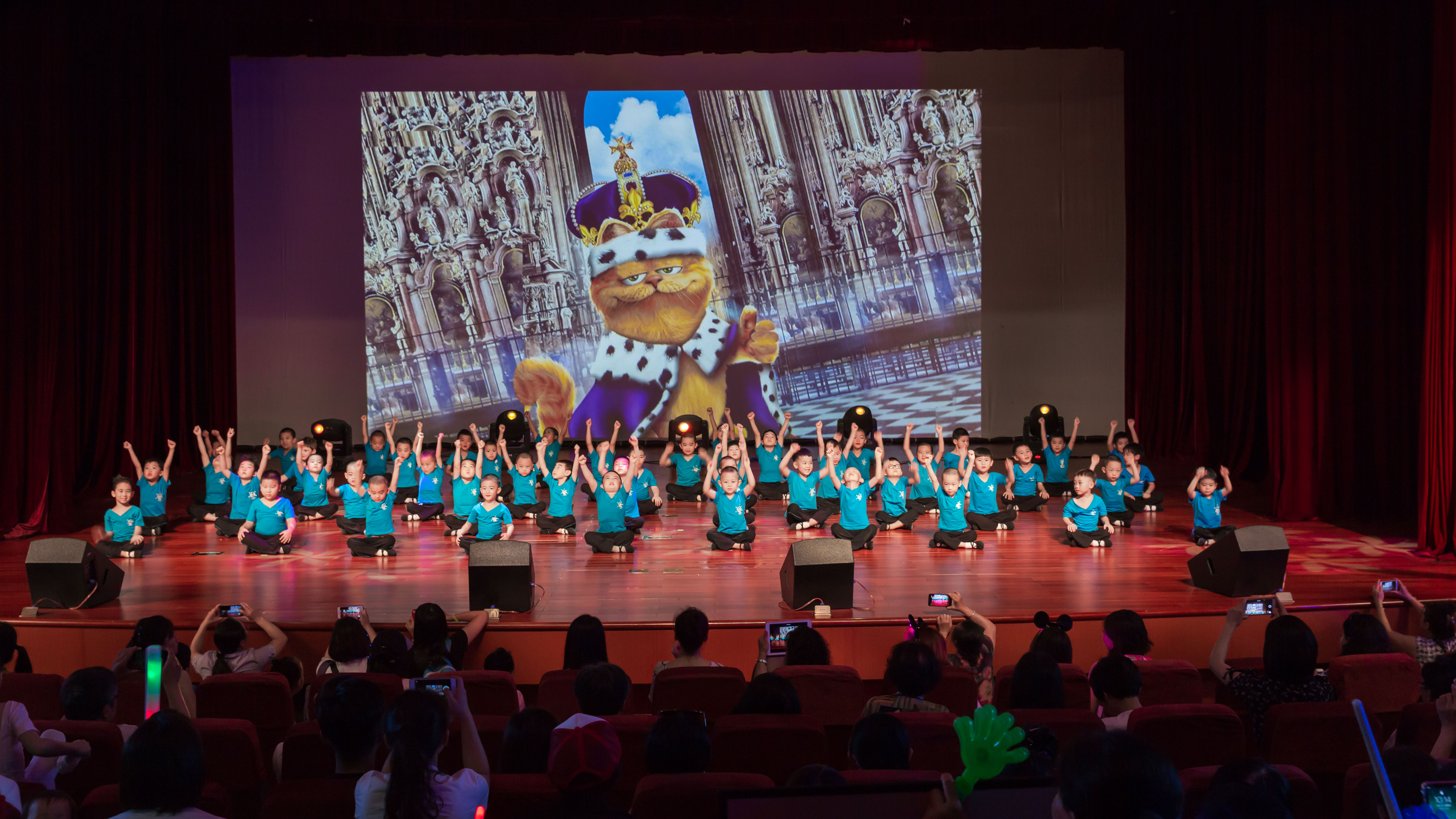 《爱睡觉的加菲猫》则在诙谐又富有韵律的音乐中,通过孩子们有模有样的松腰、提腰动作,展示出一群时而慵懒时而灵动的加菲猫们。