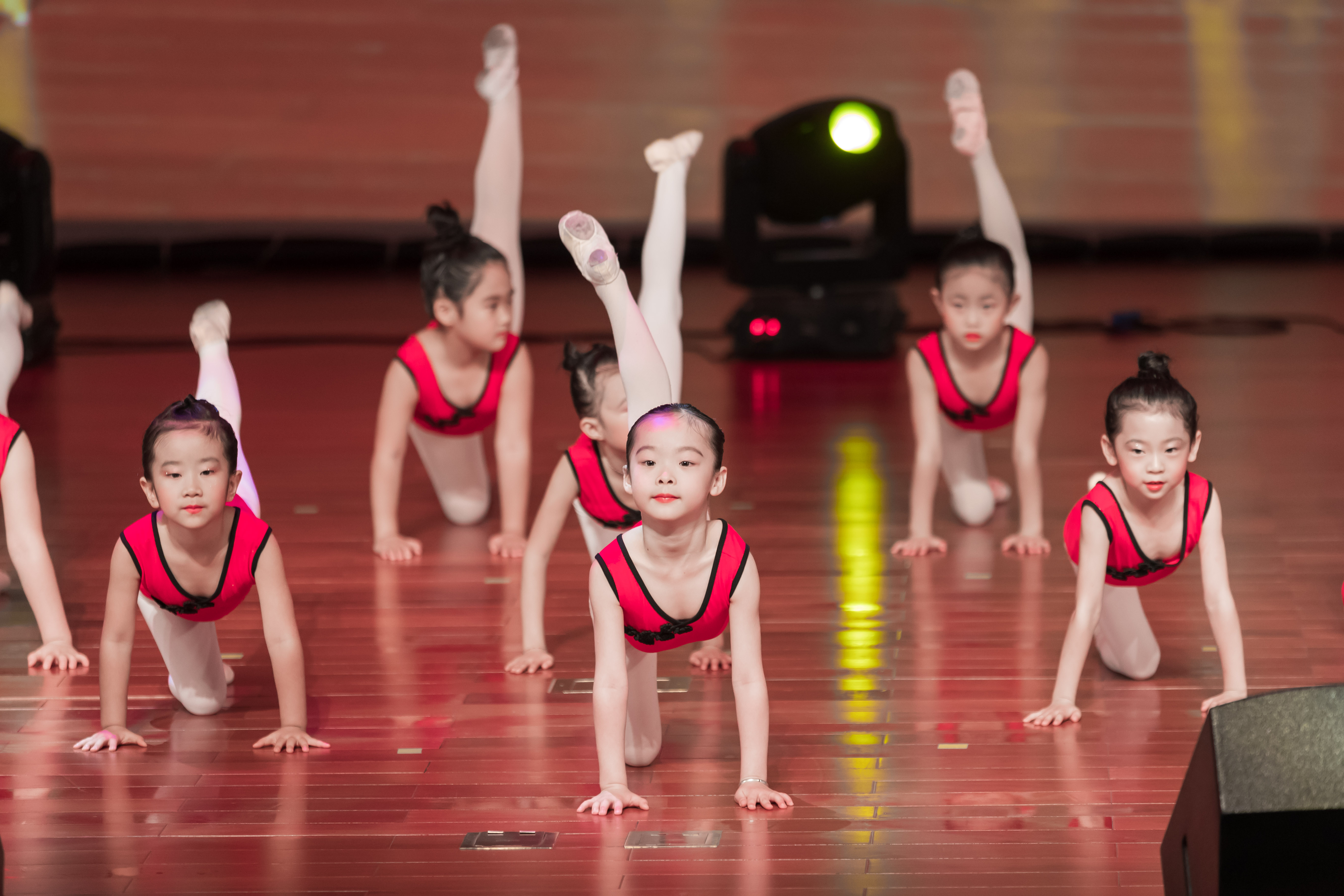 除此之外,训练勒马、扬鞭手的《滴滴答》、认知空间方位的《超级变变变》、认知手臂路线的《月儿》、训练胯部柔韧性的《娃娃》、灵活颈椎和头部动作的《咯咯咯》、认知三种脚位的《小铃铛》、针对小腿力量的《颜色歌》等组合舞蹈也完成高标准演出。