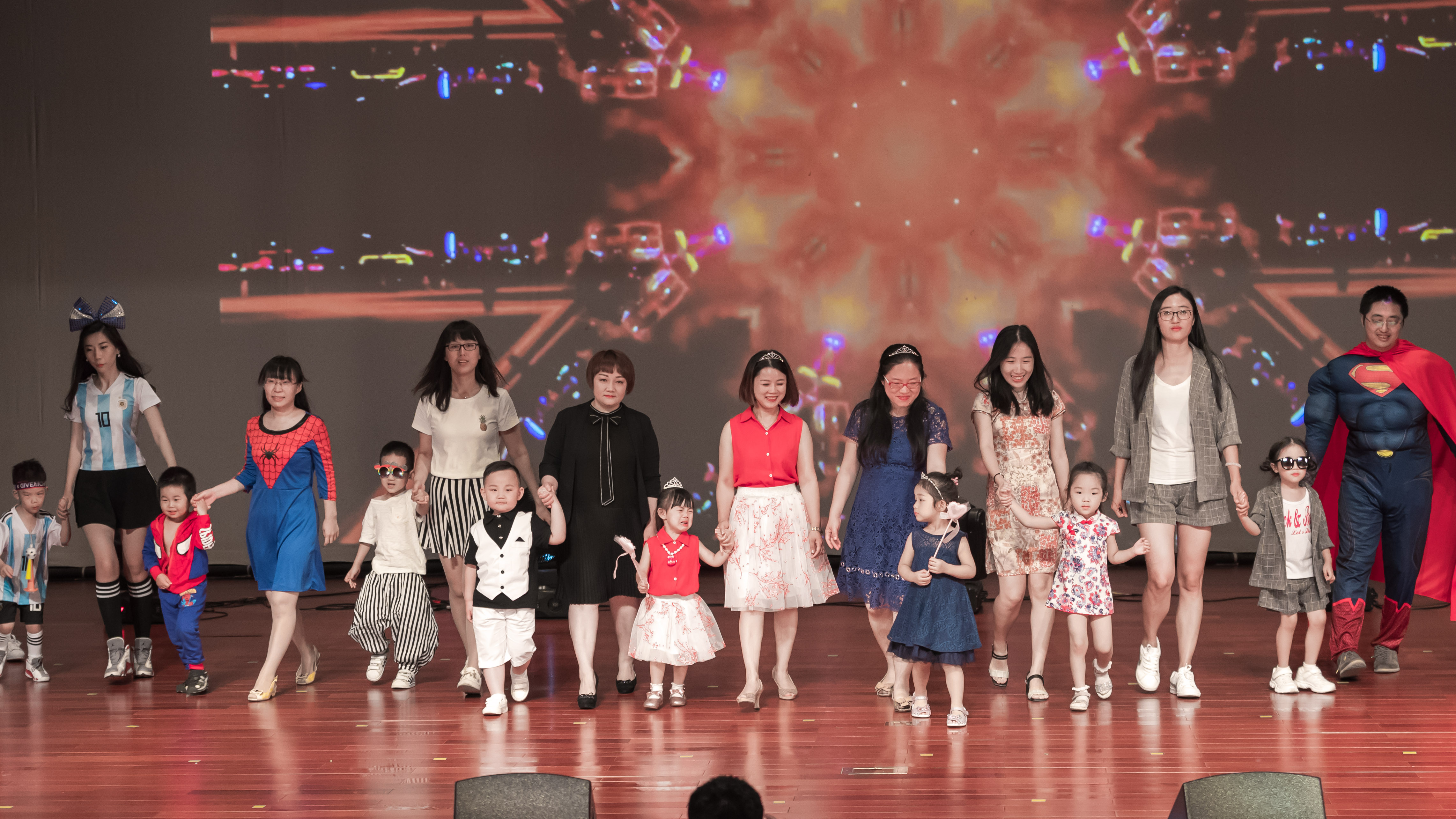 在最后的家长节目展示环节,小三班家长们带来了融和爵士、流行多种元素的舞蹈串烧《shake shake 妈咪》劲爆的音乐、酷炫的灯光和热情的舞姿立刻引爆全场,将活动气氛又一次推至高潮。