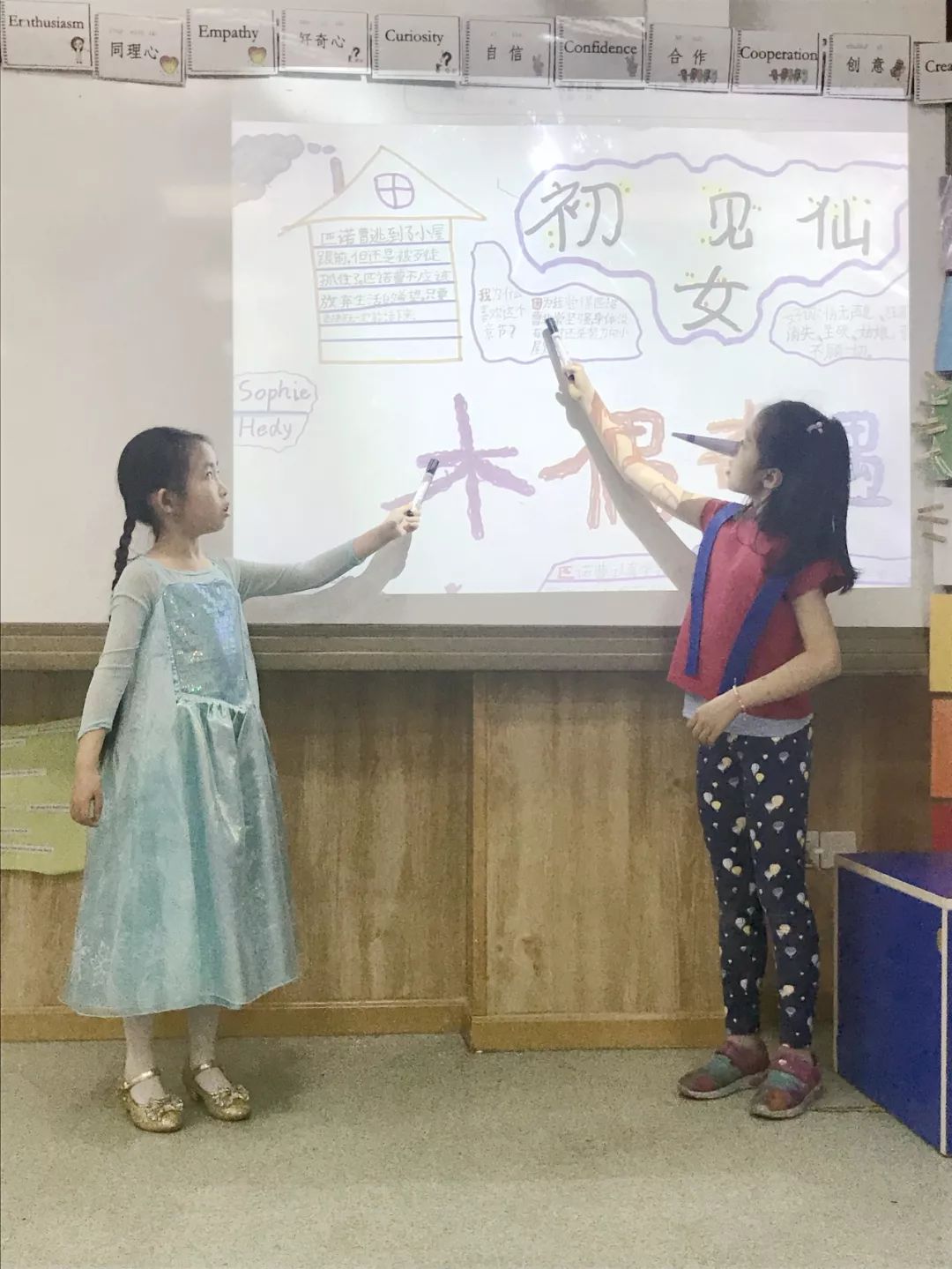 评估方式上,二年级此次阅读采用了自评(self-assessment)、同伴评估(peer-assessment)与教师评估(Teacher assessment)同时进行的方式。孩子们在听完同伴的分享后,把自己手头的星星送给分享最棒的几个小组。收获了同伴的肯定,参与展示的孩子们自然是喜悦不已。