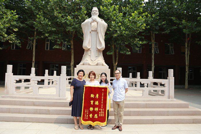 ▲家长代表送上锦旗,表达感谢之情