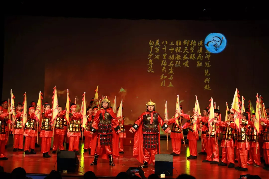 《满江红》给我的印象尤为深刻,小演员们饱含深情的演出,铿锵有力的诵读,为我们生动的演绎出一个浩然正气、壮志凌云、忧国忧民的英雄形象。