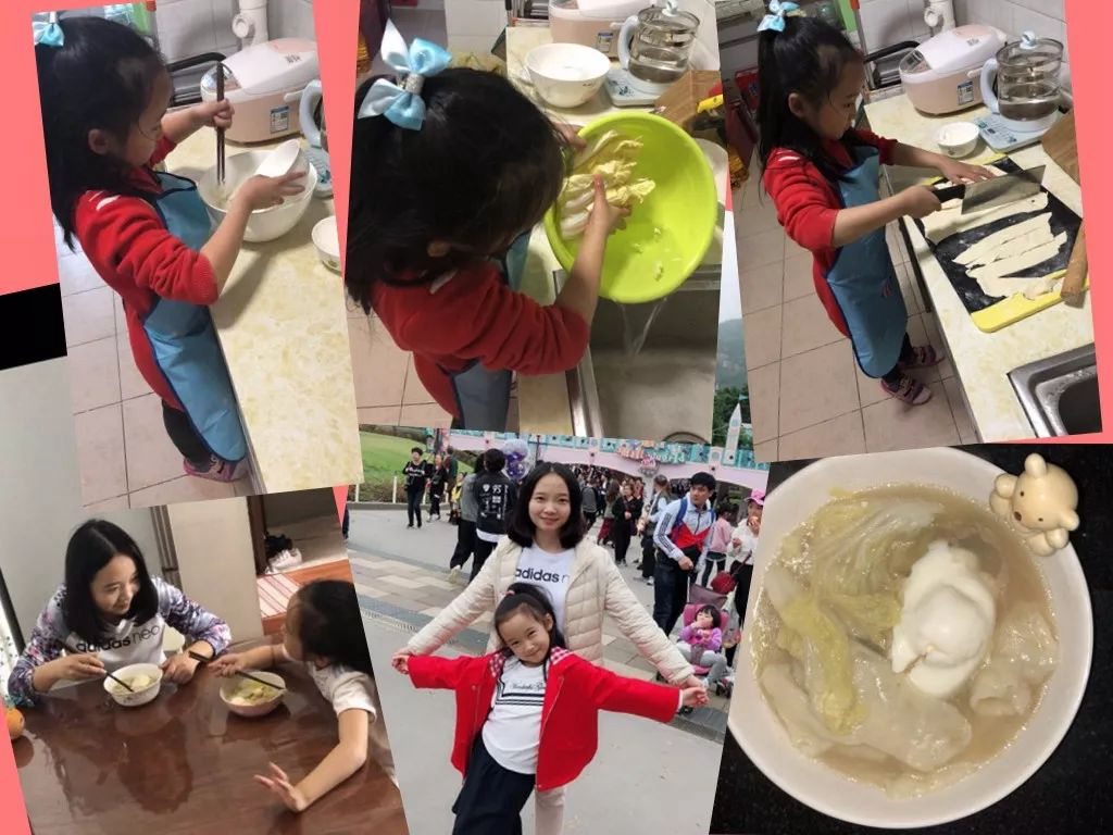 当看到你一步一步地和面、揉面、醒面、洗菜、擀面、切面……每个步骤都那么井井有条,妈妈忽然觉得你长大了,懂得体贴父母,不再是昨天那个依偎在我怀里撒娇的小女孩了。